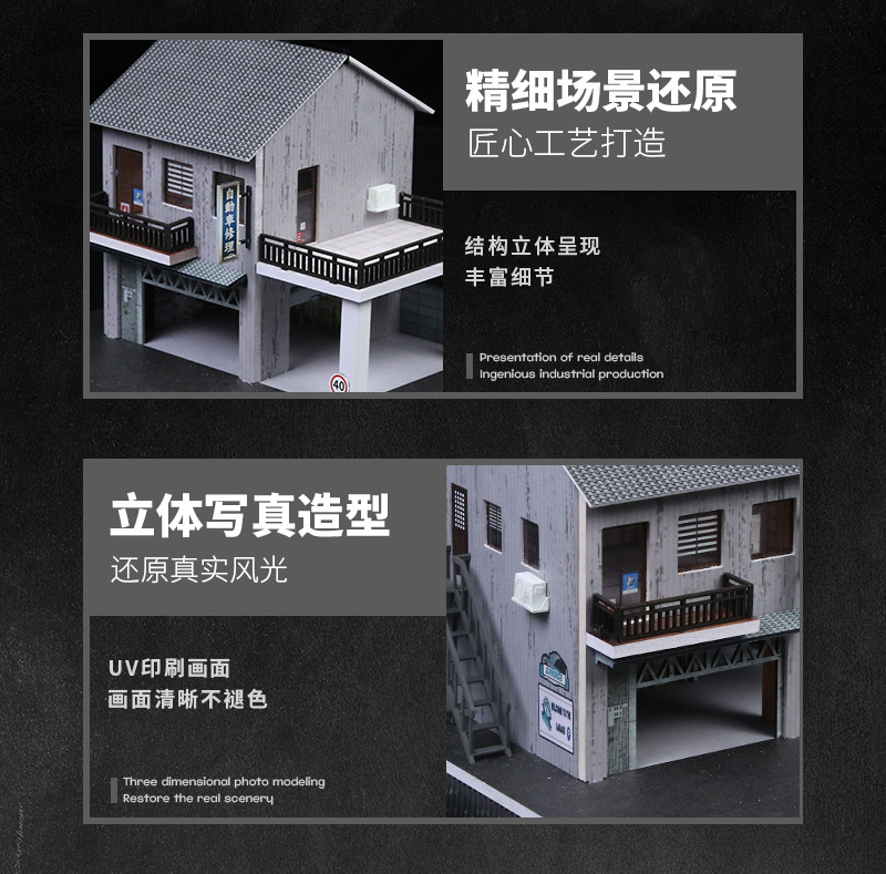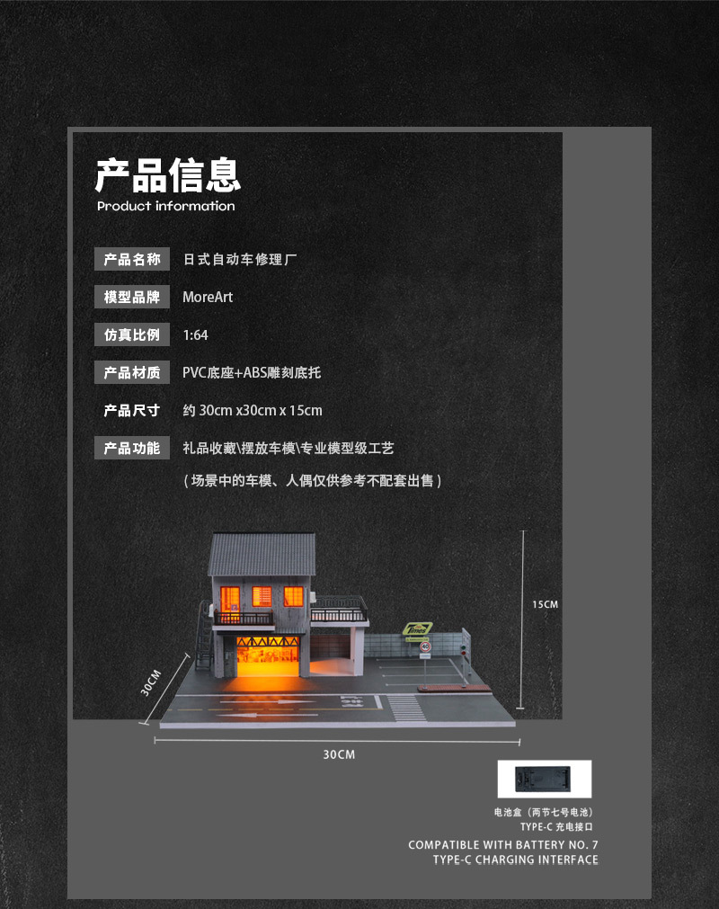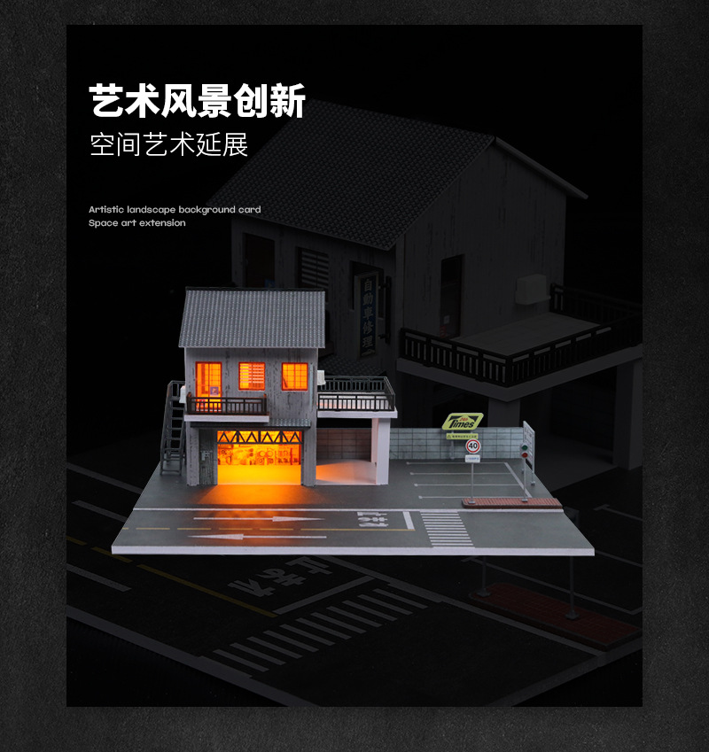 匯藝MoreArt1:64 日式自動車修理廠燈光場景仿真模型