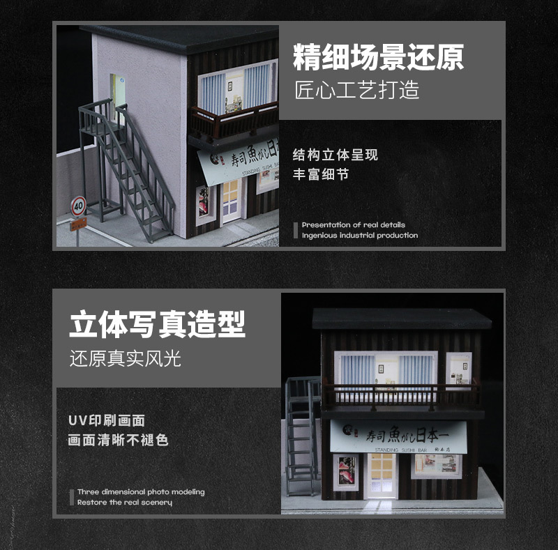 匯藝MoreArt1:64 街邊場景燈光拼裝系列06款仿真模型