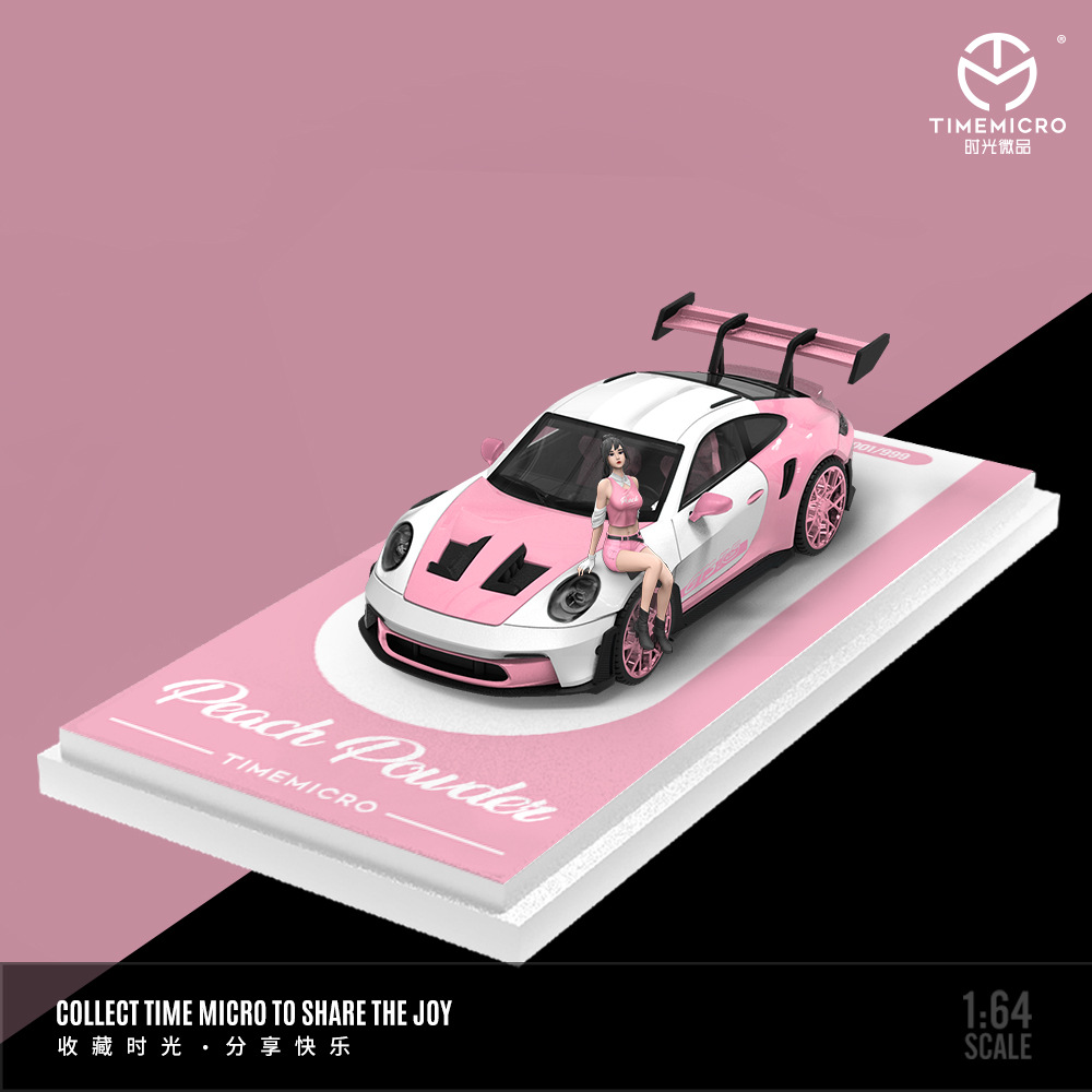 時光TimeMicro1:64 蜜桃粉拖車套裝 仿真合金汽車模型