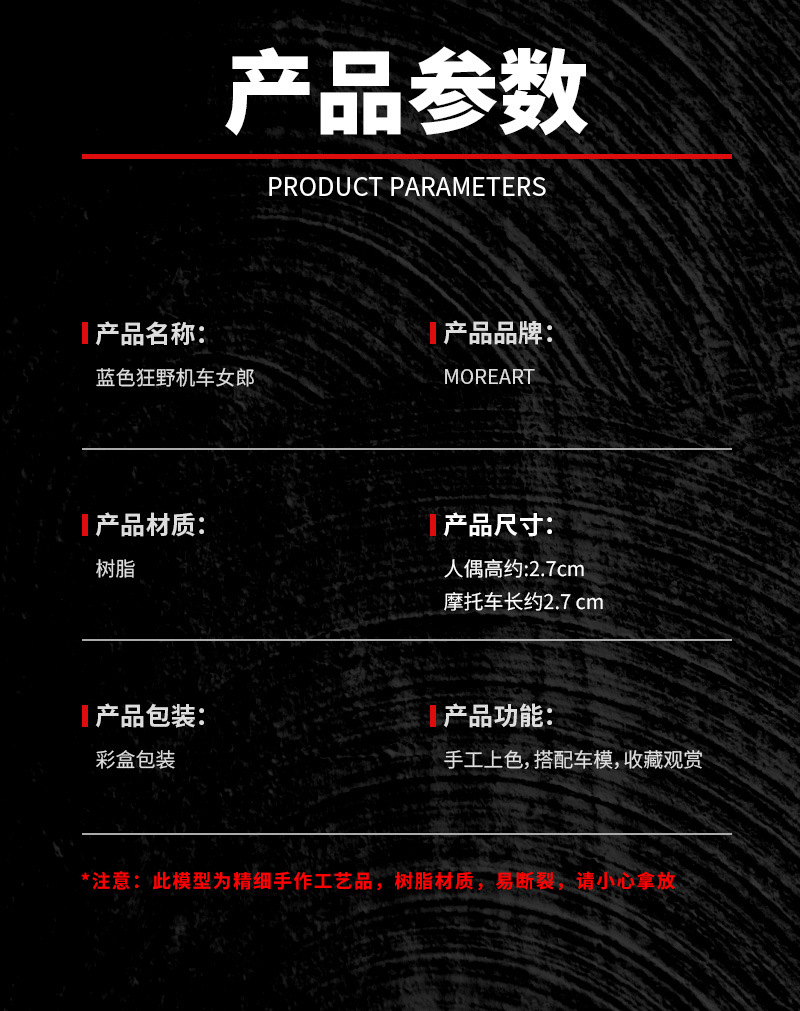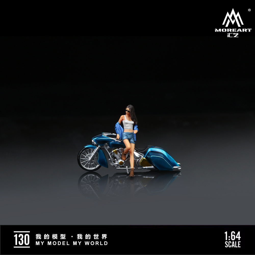 MoreArt1:64 藍色狂野機車女郎仿真樹脂模型